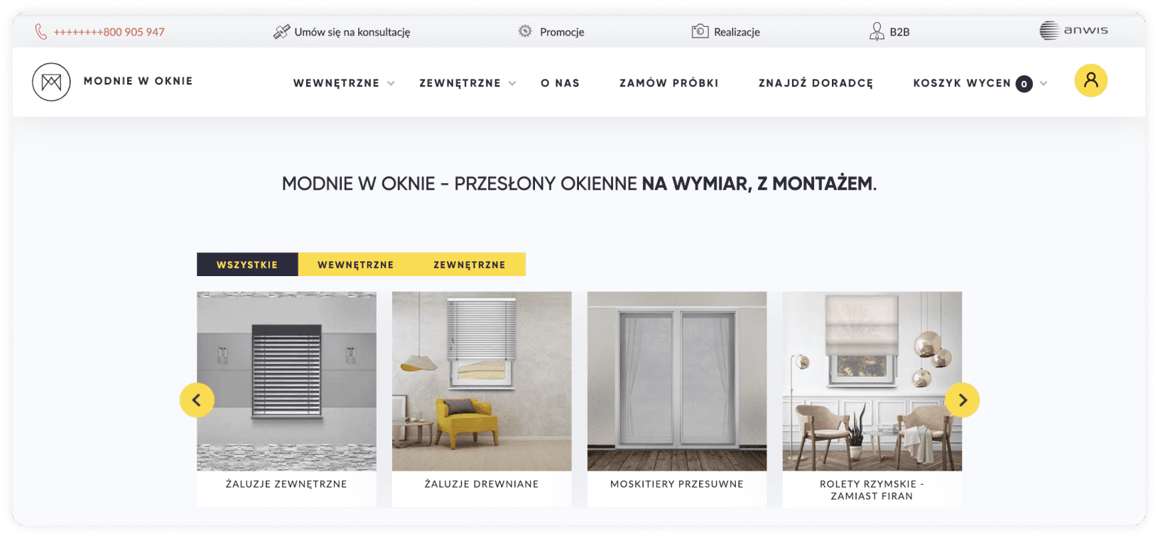 mwo.pl is the website of a store that sells customized window coverings. The task was to find design flaws that make it difficult for users to browse the content and shop efficiently.