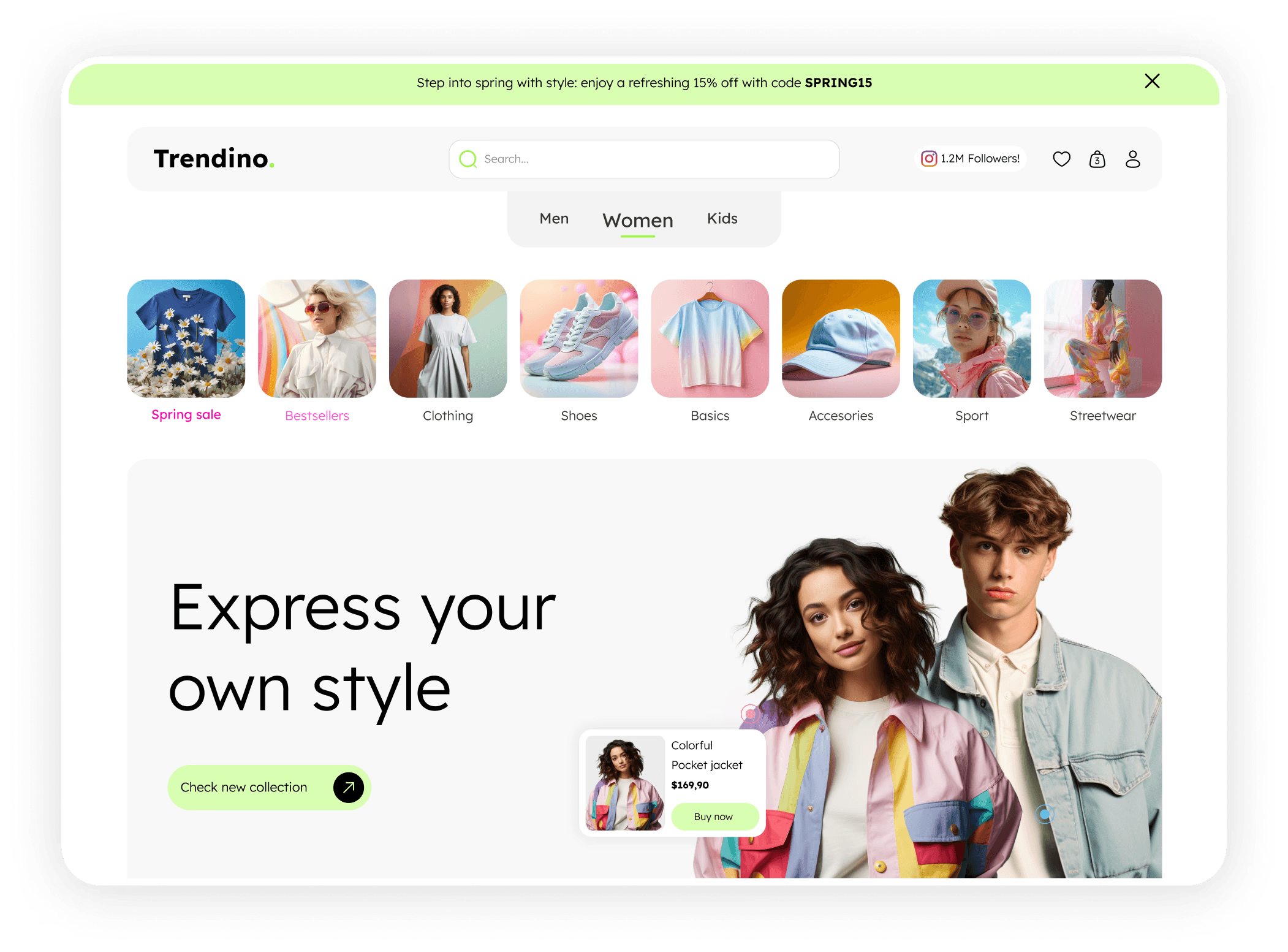 Trendino is one of the online store templates that can be used for various types of online stores.